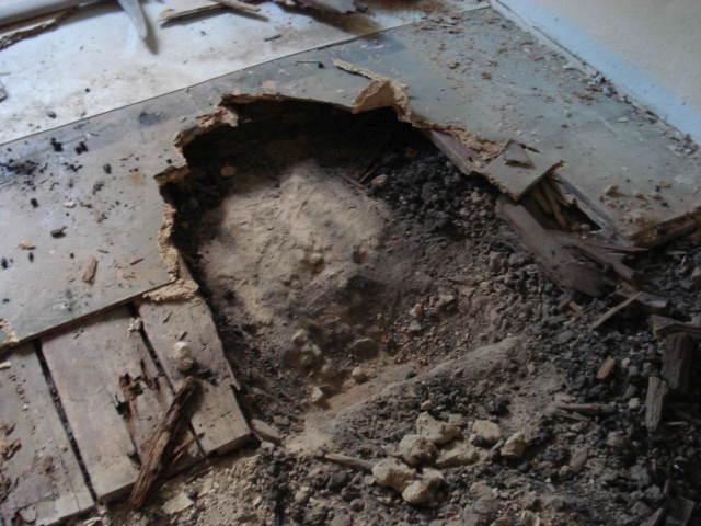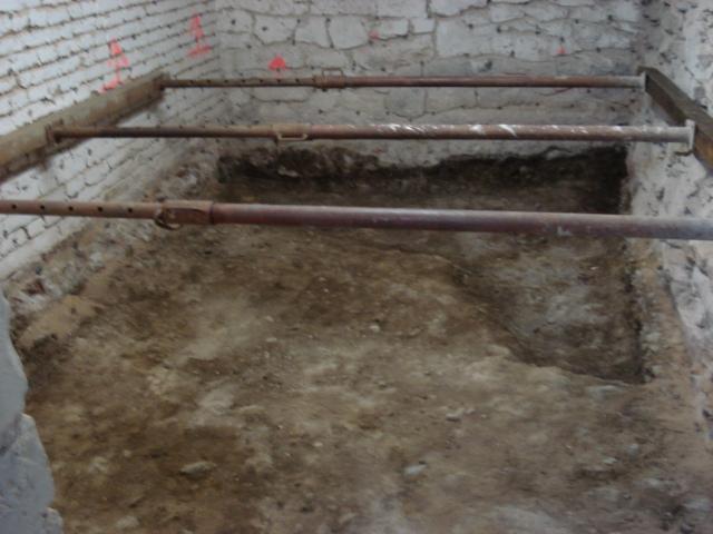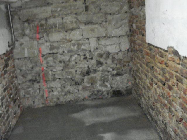 - 5. injiziertes Mauerwerk und Bodenaufbau und Erdreich ausgegraben