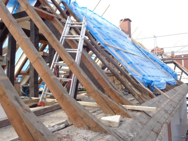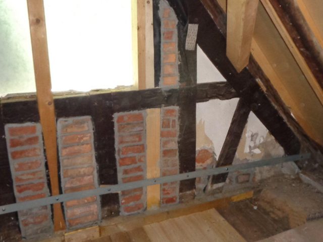 - 17. Verstärken des vorh. Holzdachstuhl und Wiedereinbau der Kopfbän der