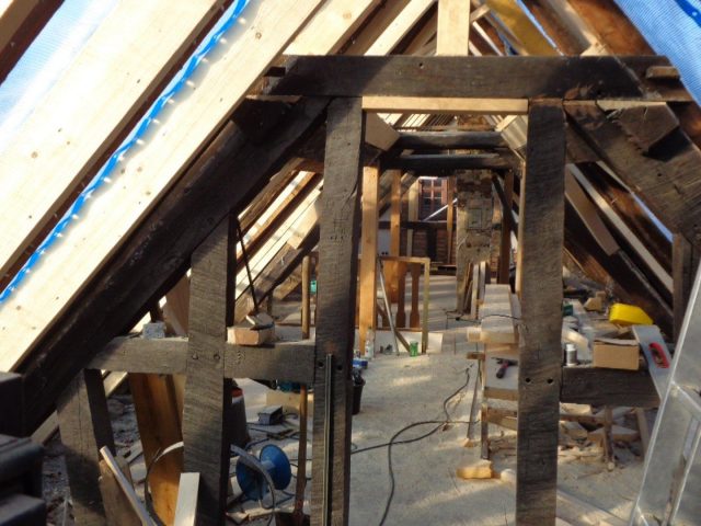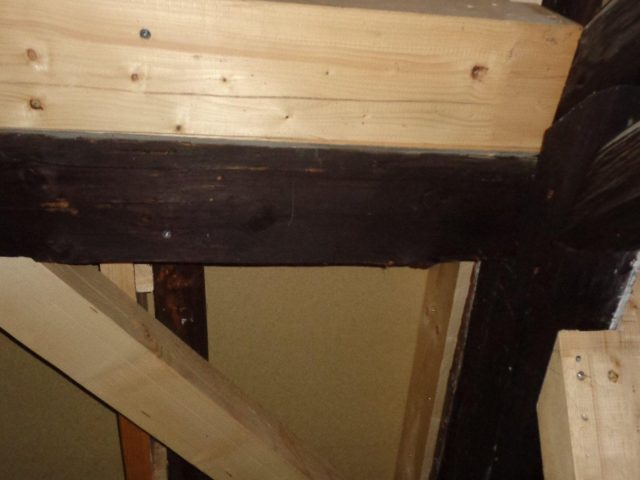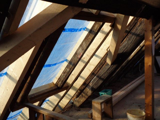 - 18. Detail neue Holzpfosten, verstärkung der Mittelpfette und neue Kopfbänder