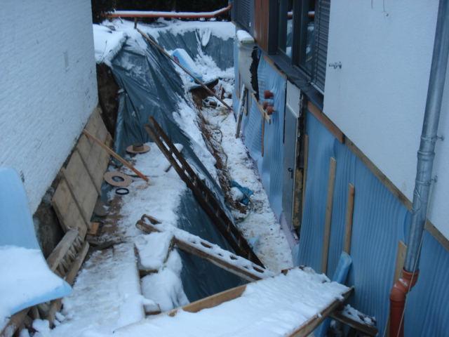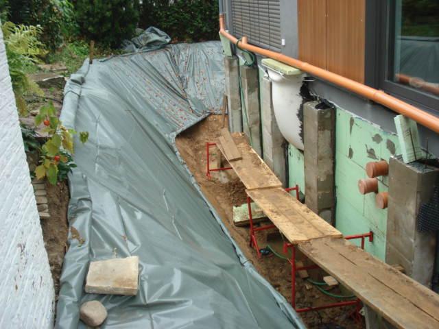 Sanierung einer Kelleraußenwandabdichtung mit Kemperol und Einbau einer Drainage und Rigole